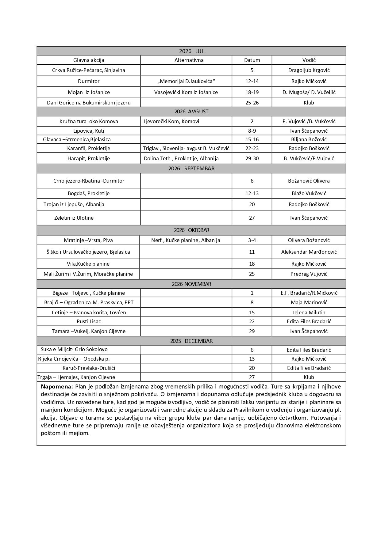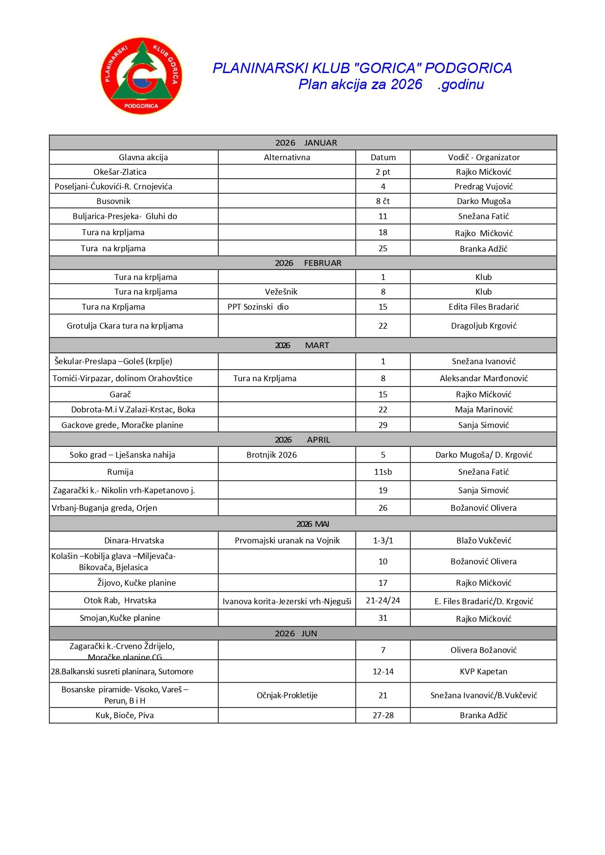 - albanija Balkanski susreti planinara bilten borovnik brotnjik bukumirsko jezero busovnik durmitor himalaji hridsko jezero Ilijina glava izvor morače Kolate Kotor kuči Kučke planine lastovo Lopate Lovćen medun mljet moračke planine nepal orjen petnjica piva plan akcija planinica planovi prekornica prokletije sinjavina starac Stijena Piperska studeno suka sutorman tali terzin bogaz umovi vrmac čakor đalovića klisura šekular živa